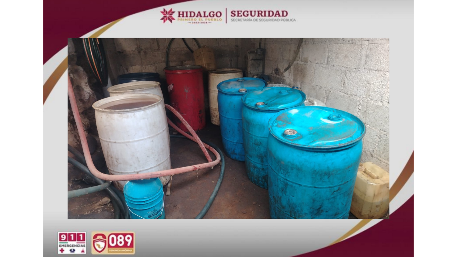 Fue asegurado un predio en Texcaltitla, donde se decomisaron más de 7 mil litros de combustible robado